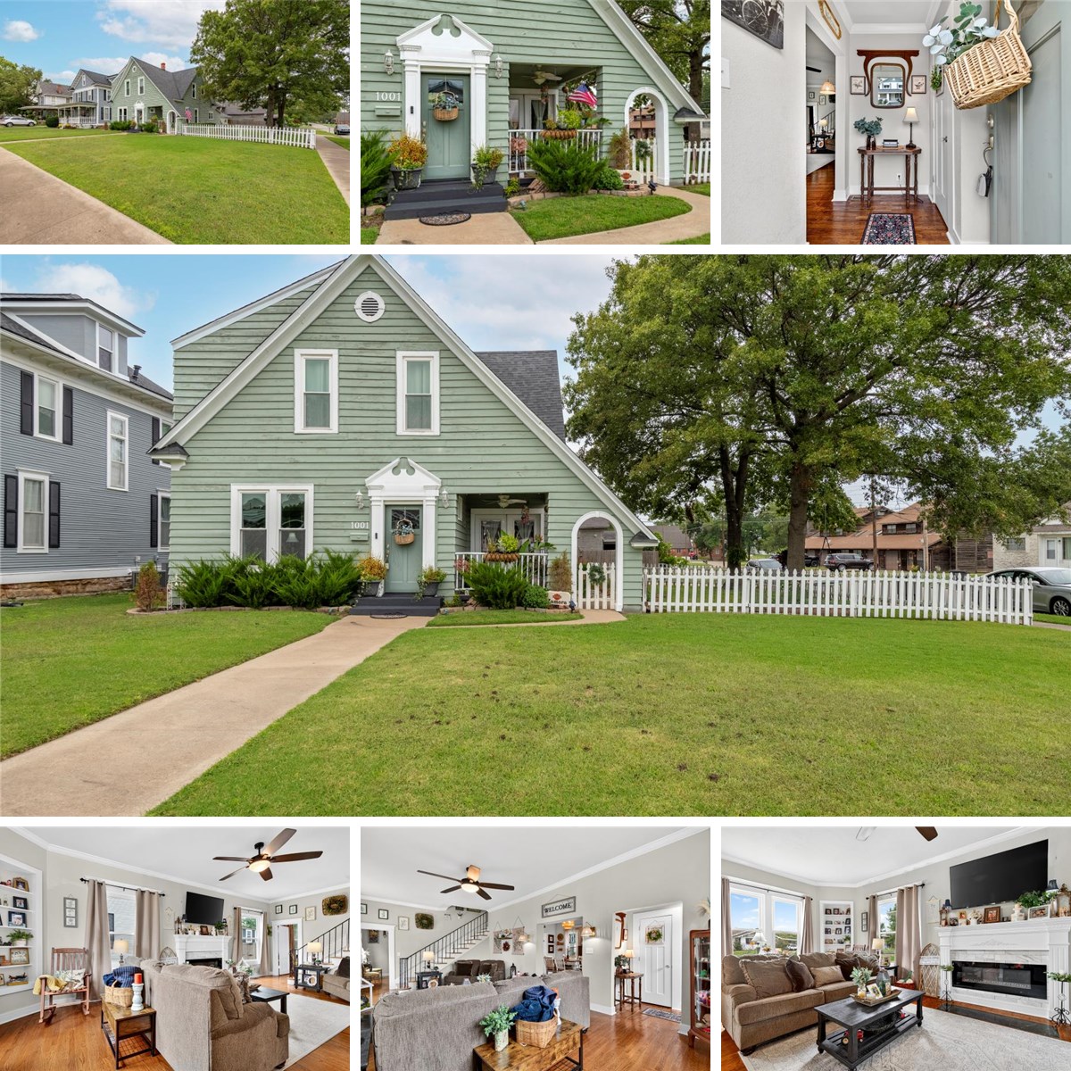Own a piece of History! Frank Phillips' first home. Granite at the fireplace Frank brought in from New York and is original to the home. Preserved doors and preserved original woodwork throughout most of the home. Elegant original wood staircase and all gorgeous original wood floors. Absolutely stunning 5 bdrm, 2.5 bath, downstairs primary bedroom, with full bath, and oversized walk-in closet. 4 Bedrooms upstairs, 2 with walk-in closets, gorgeous bathroom. Family dining area, double doors lead to a private sitting area outside. Home has a newer roof, newer vinyl windows, a spectacular kitchen completely remodeled, 2 AC/Heating units with newer ductwork and vents, newer plumbing, and newer bathrooms. Updated electrical with/ newer breaker box, newer wiring throughout. The new deck is great for entertainment! Detached garage, this unique garage was a carriage house with original beams that are preserved and forever beautiful. Move-in ready!