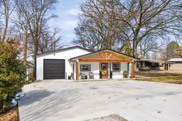 Welcome to the lake life you’ve been dreaming about. Perfectly positioned along nearly 56 feet of waterfront, this stunning, fully remodeled home offers the rare opportunity to enjoy immediate access to the water with dockable shoreline and breathtaking views from your own backyard. Inside, a thoughtfully designed open floor plan creates an effortless flow for both everyday living and entertaining. Rich luxury vinyl plank flooring stretches throughout the home, while a striking electric fireplace, framed by custom bookcases, anchors the living space with warmth and sophistication. The kitchen is a true showpiece, featuring farmhouse sink, soapstone countertops, brand-new custom cabinetry, center island, and pantry with pull-out drawers, every detail has been carefully considered. Stainless appliances including a built-in microwave/air fryer and wine fridge. Retreat to the serene primary suite where the spa-inspired bath invites relaxation with a soaking tub with shower. The hall bath impresses with an oversized shower and equally generous storage — a rarity in lake homes. Beyond the aesthetics, this home delivers peace of mind with major mechanical upgrades already completed, including a new roof, HVAC system, plumbing, electrical, lighting, and vinyl windows. Step outside to your brand-new covered deck overlooking the water — the perfect setting for sunrise coffee, sunset gatherings, or weekends spent lakeside. The fully fenced yard offers privacy with new side fencing and unobstructed lake views across the back. Boat owners will appreciate the pass-through tandem two car garage featuring dual 10x10 roll-up doors for easy access and storage flexibility. A newly installed propane tank is already in place should future owners wish to add a whole-home generator — another thoughtful upgrade. Storage building in the back can hold your golf cart or lake toys. Don't miss out on this opportunity just in time for lake season!