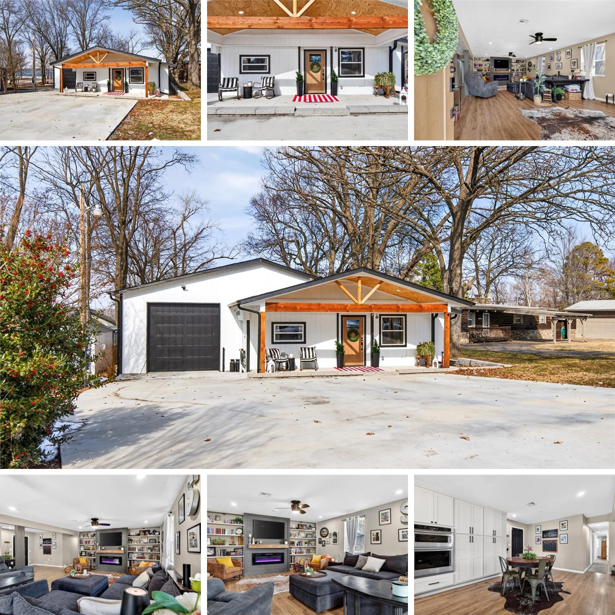 Welcome to the lake life you’ve been dreaming about. Perfectly positioned along nearly 56 feet of waterfront, this stunning, fully remodeled home offers the rare opportunity to enjoy immediate access to the water with dockable shoreline and breathtaking views from your own backyard. Inside, a thoughtfully designed open floor plan creates an effortless flow for both everyday living and entertaining. Rich luxury vinyl plank flooring stretches throughout the home, while a striking electric fireplace, framed by custom bookcases, anchors the living space with warmth and sophistication. The kitchen is a true showpiece, featuring farmhouse sink, soapstone countertops, brand-new custom cabinetry, center island, and pantry with pull-out drawers, every detail has been carefully considered. Stainless appliances including a built-in microwave/air fryer and wine fridge. Retreat to the serene primary suite where the spa-inspired bath invites relaxation with a soaking tub with shower. The hall bath impresses with an oversized shower and equally generous storage — a rarity in lake homes. Beyond the aesthetics, this home delivers peace of mind with major mechanical upgrades already completed, including a new roof, HVAC system, plumbing, electrical, lighting, and vinyl windows. Step outside to your brand-new covered deck overlooking the water — the perfect setting for sunrise coffee, sunset gatherings, or weekends spent lakeside. The fully fenced yard offers privacy with new side fencing and unobstructed lake views across the back. Boat owners will appreciate the pass-through tandem two car garage featuring dual 10x10 roll-up doors for easy access and storage flexibility. A newly installed propane tank is already in place should future owners wish to add a whole-home generator — another thoughtful upgrade. Storage building in the back can hold your golf cart or lake toys. Don't miss out on this opportunity just in time for lake season!